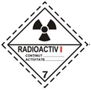 417. The hazard label with a black trefoil at the top and the inscription "radioactive" at the bottom refers to the class: Nhãn nguy hiểm có hình tam giác đen ở trên và chữ "radioactive" (phóng xạ) ở dưới đề cập đến phân loại: