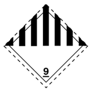 421. The hazard label with white background with 7 black vertical stripes in the upper half and the number 9 in the lower corner refers to the class: Nhãn nguy hiểm có nền trắng với 7 sọc đen đứng ở nửa trên và số 9 ở góc dưới đề cập đến phân loại: