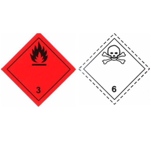443. What do two hazard labels next to each other indicate on a package? Hai nhãn nguy hiểm cạnh nhau trên một bao bì cho biết điều gì?